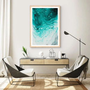Poster in einem Rahmen aus heller Eiche - Verschmelzen in Weiß und Türkis - 30x30 cm