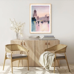 Poster in einem Rahmen aus heller Eiche - Im regnerischen Dunst - 50x70 cm