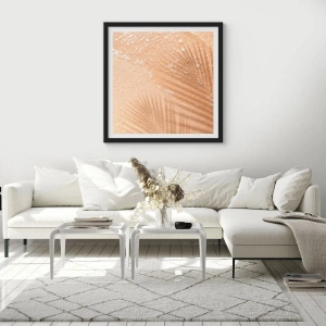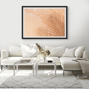 Poster in einem schwarzem Rahmen - Der Schatten einer Palme auf dem Sand mit einem zarten Wellenmuster - 100x70cm - Der Schatten eines heißen Sommers - Moderne Wanddekoration für Wohnzimmer und Schlafzimmer ARTTOR