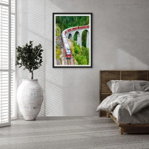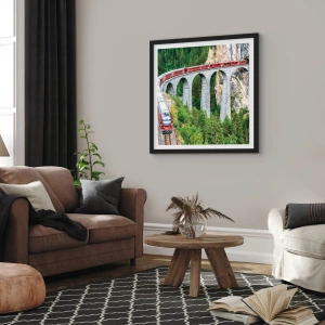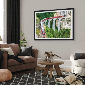 Poster in einem schwarzem Rahmen - Eisenbahn für Bergblick - 40x50 cm