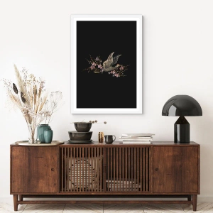 Poster in einem weißen Rahmen - Exotischer gestickter Vogel - 70x50 cm