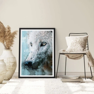 Poster in einem schwarzem Rahmen - Wolfsporträt mit künstlerischen Aquarelldetails - 50x70cm - Lerne die Wolfsseele kennen - Moderne Wanddekoration für Wohnzimmer und Schlafzimmer ARTTOR