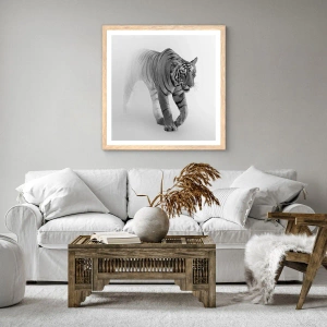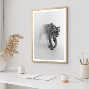 Poster in einem Rahmen aus heller Eiche - Im Nebel gelauert - 100x70 cm