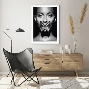 Poster in einem weißen Rahmen - Schmetterlingskuss - 100x70 cm