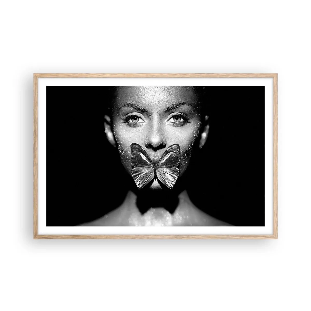 Poster in einem Rahmen aus heller Eiche - Schmetterlingskuss - 91x61 cm