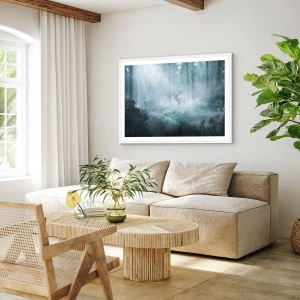 Poster in einem weißen Rahmen - Morgenvisite auf dem Grundstück - 70x50 cm
