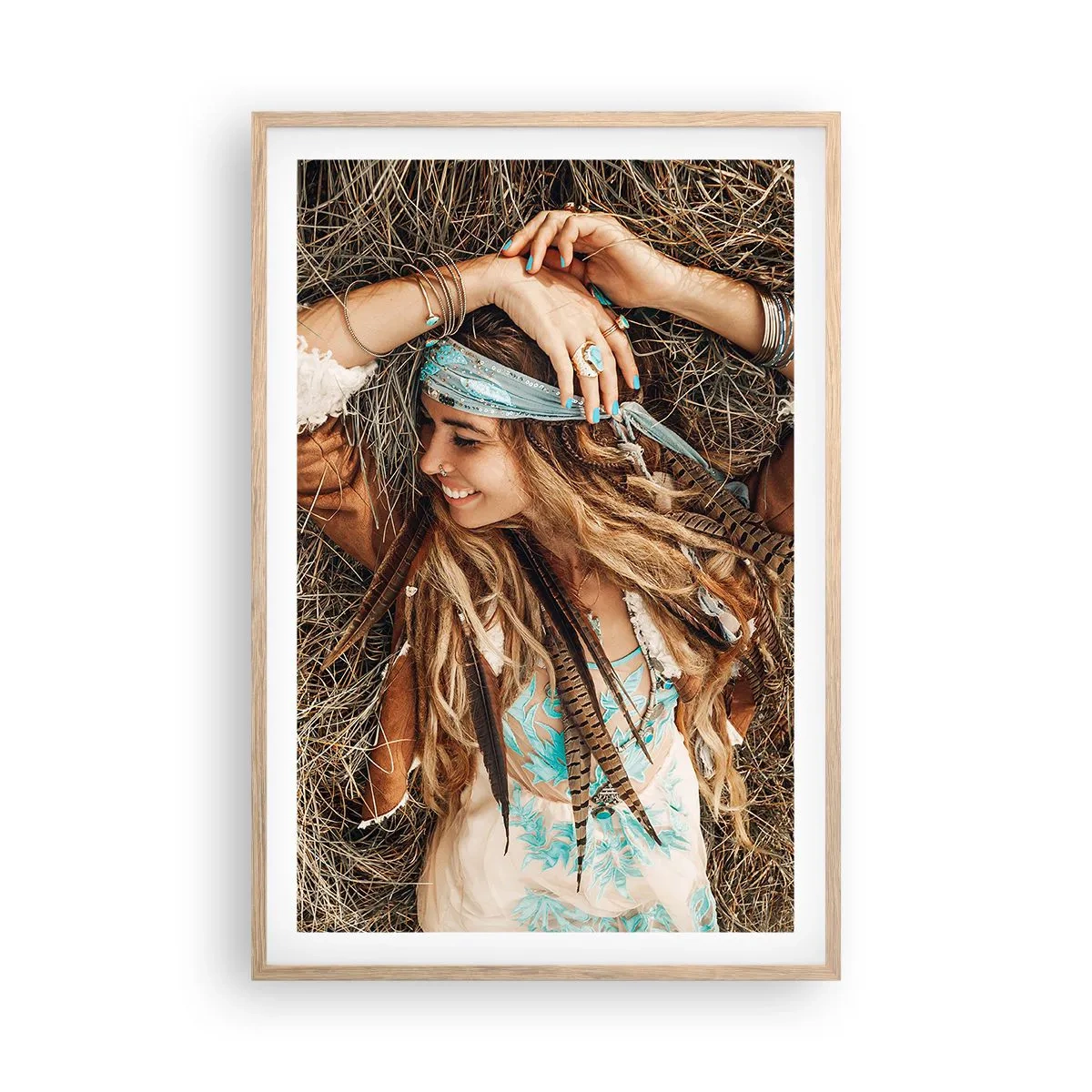 Poster in einem Rahmen aus heller Eiche - Auf dem Weg in den Sommer der Liebe - 61x91 cm