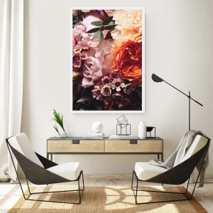 Poster - Eine Nahaufnahme einer farbenfrohen Blumenkomposition - 100x70cm - Eingehüllt in Schönheit - Moderne Wanddekoration für Wohnzimmer und Schlafzimmer ARTTOR