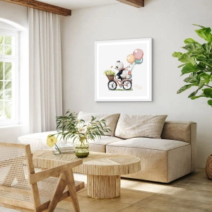 • Für Kinder, Panda auf dem Fahrrad, Abstraktion, Für Kinder, Pastell, Tiere, Für das Kinderzimmer Weiß, Horizontal