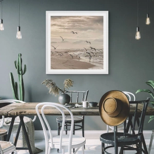 Poster in einem weißen Rahmen - Meeresrauschen, Vogelgesang - 70x50 cm