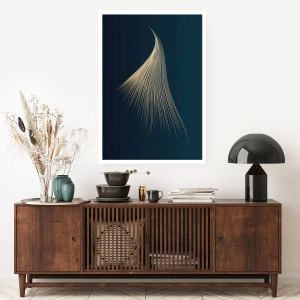 Poster - Eine goldene abstrakte Form, die einer Haarsträhne auf einem marineblauen Hintergrund ähnelt. - 50x70cm - Wie das Haar eines Engels - Moderne Wanddekoration für Wohnzimmer und Schlafzimmer ARTTOR