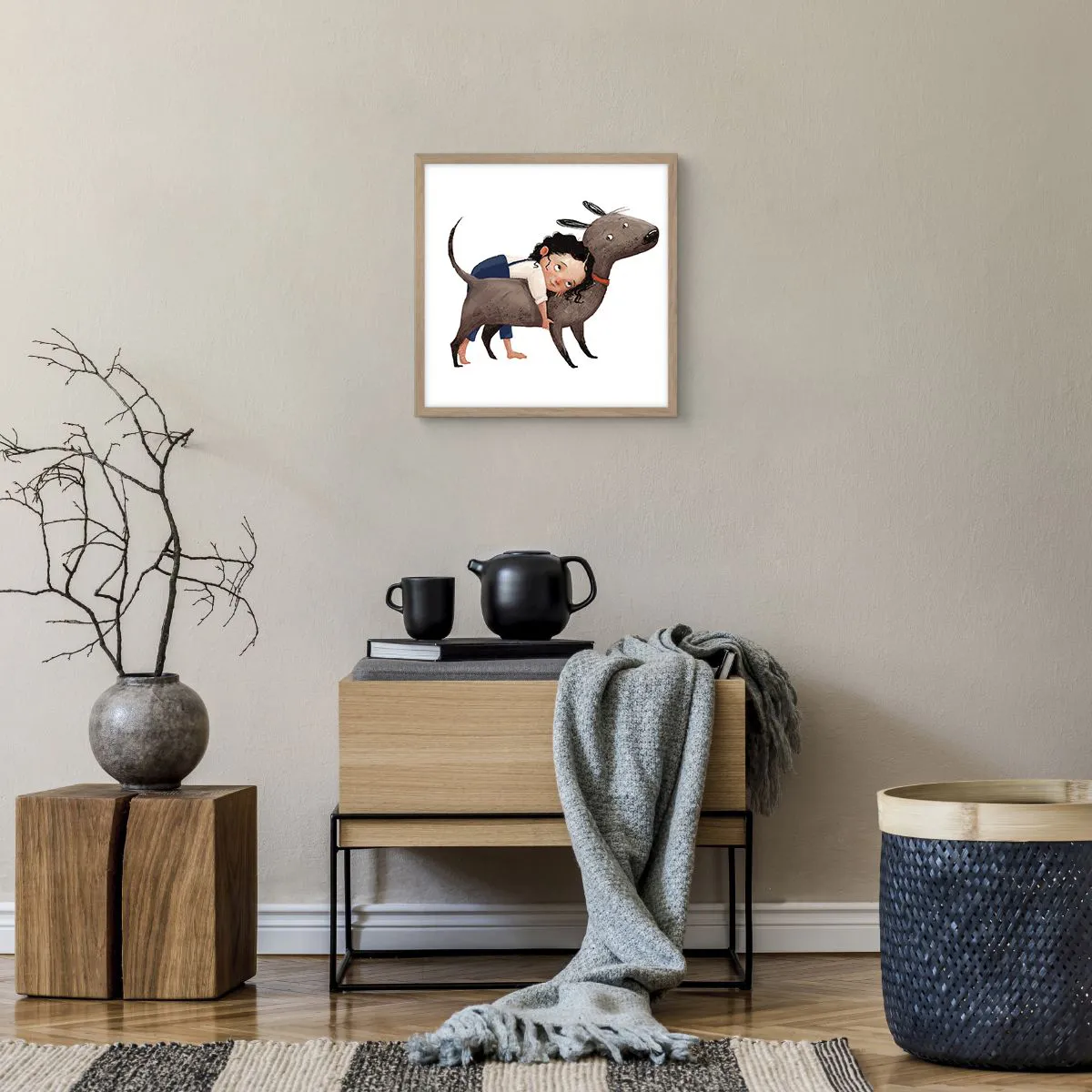Poster in einem Rahmen aus heller Eiche - Beste Freunde - 40x40 cm