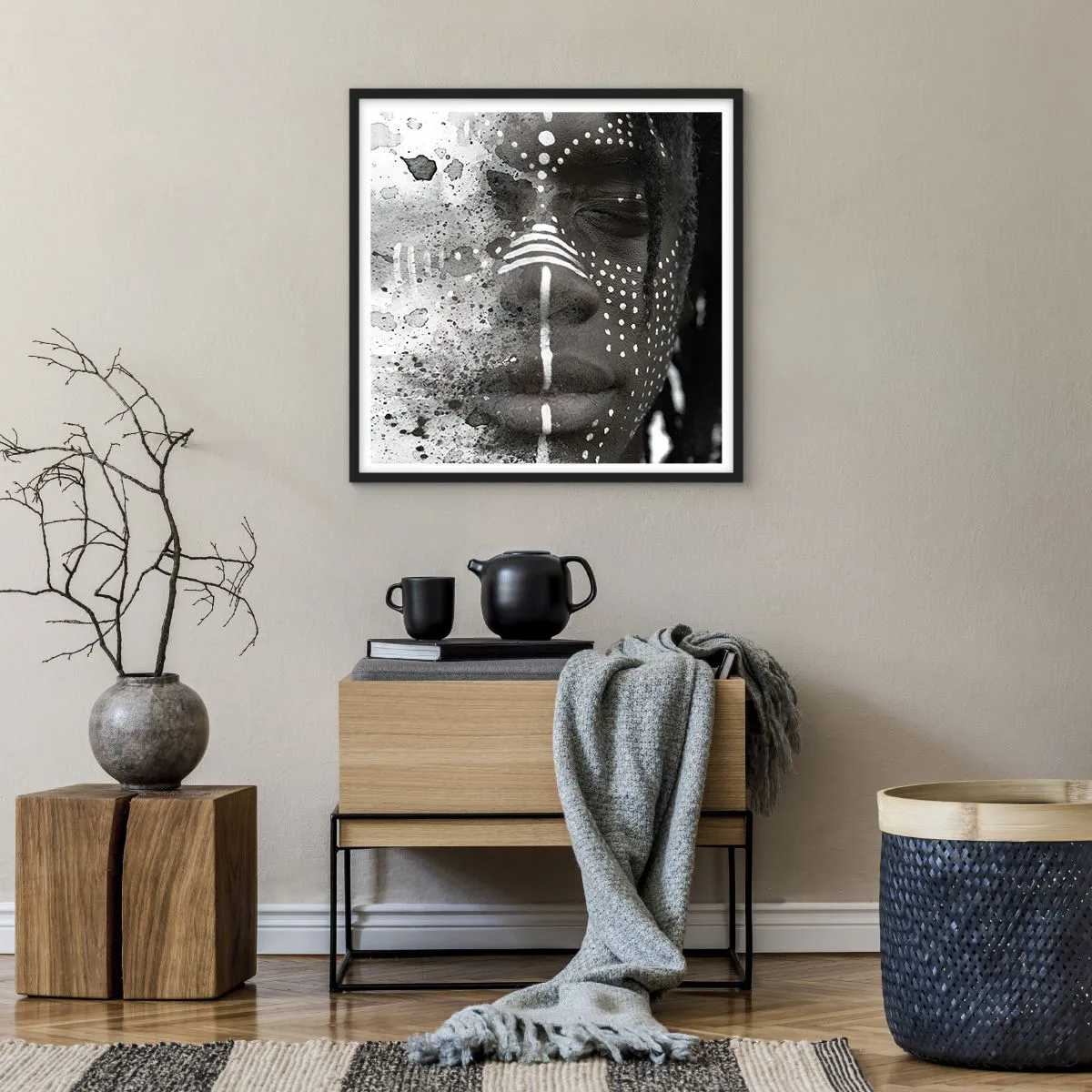 Poster in einem schwarzem Rahmen - Entdecke den Urgeist - 60x60 cm