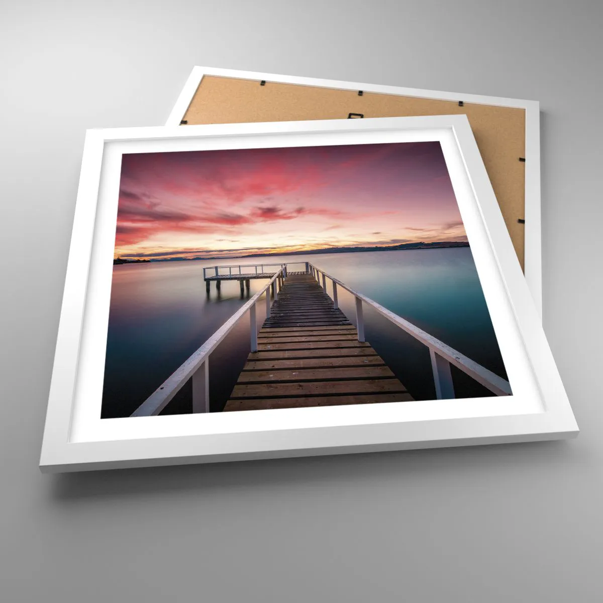 Poster in einem weißen Rahmen - Die sanfte Flamme des Abends - 40x40 cm