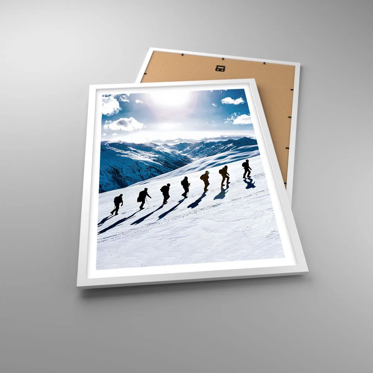 An jedem Rahmen sind zwei Aufhänger angebracht, sodass er sofort an die Wand gehängt werden kann. Der Rahmen kann sowohl vertikal als auch horizontal aufgehängt werden
