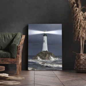 Der Mittelpunkt des Gemäldes ist ein hoher, weißer Leuchtturm, dessen Licht den dunklen Himmel erhellt und sich auf den Wellen spiegelt. Die Felsen, auf denen er steht, betonen seine Beständigkeit und Widerstandsfähigkeit gegen die Elemente der Natur. Die umgebende Leinwand zeigt schäumende Wellen, die der Komposition Dynamik und Bewegung verleihen und im Kontrast zur majestätischen Ruhe des Leuchtturms stehen.