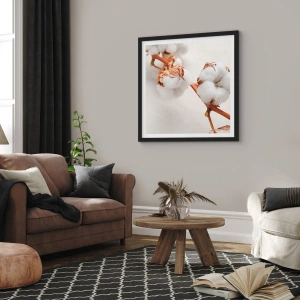 Poster in einem schwarzem Rahmen - Ein Zweig Baumwolle auf dezentem Untergrund - 70x50cm - Nur umarmen - Moderne Wanddekoration für Wohnzimmer und Schlafzimmer ARTTOR