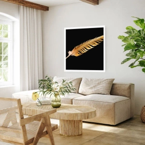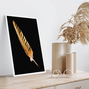 Poster - Goldene Feder auf schwarzem Hintergrund - 50x70cm - Er hat ein ungewöhnliches Schreibtalent ... - Moderne Wanddekoration für Wohnzimmer und Schlafzimmer ARTTOR