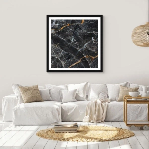 Das Marmormuster auf dem Poster spiegelt natürliche Schönheit und Harmonie wider und zieht gleichzeitig mit seinem luxuriösen Charakter die Aufmerksamkeit auf sich. In die schwarze Struktur integrierte goldene Akzente verleihen dem Produkt einen einzigartigen Charakter, der perfekt zu einer Vielzahl von Einrichtungsstilen passt, von klassisch bis industriell.