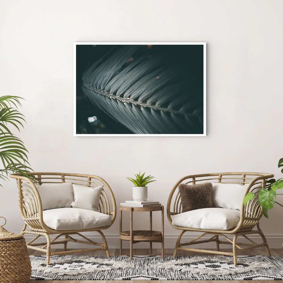 Poster - Nahaufnahme eines dunkel getönten Palmblattdetails - 100x70cm - Die Präzision der Natur - Moderne Wanddekoration für Wohnzimmer und Schlafzimmer ARTTOR