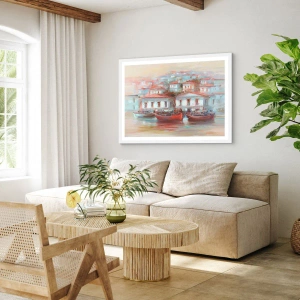 Poster in einem weißen Rahmen - Glückliche Stadt - 50x50 cm