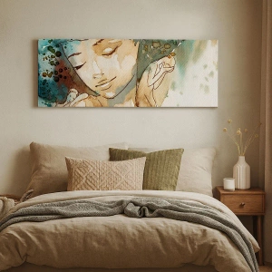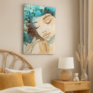 Bild auf Leinwand - Leinwandbild - Porträt einer Frau in zarten Aquarellfarben - 120x80cm - Dame in Blau - Moderne Wanddekoration für Wohnzimmer und Schlafzimmer ARTTOR