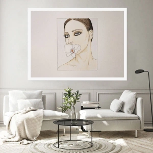 Poster - Porträt einer Frau mit einer Orchidee auf den Lippen - 50x70cm - Ein Symbol für Eleganz und Schönheit - Moderne Wanddekoration für Wohnzimmer und Schlafzimmer ARTTOR