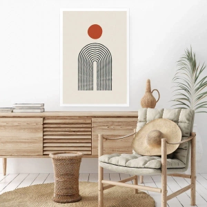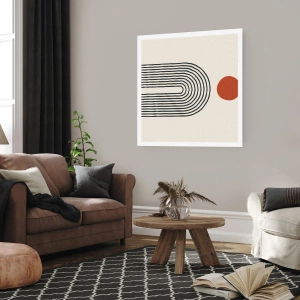Poster - Modernes abstraktes Muster mit Linien und einem roten Kreis - 100x70cm - Magnetismus von Formen und Farben - Moderne Wanddekoration für Wohnzimmer und Schlafzimmer ARTTOR