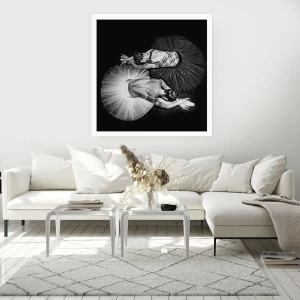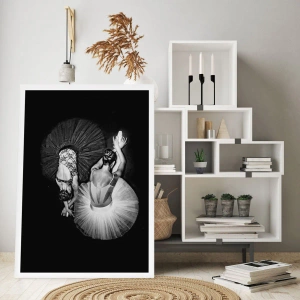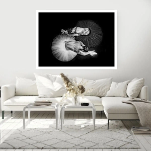 Poster - Ein Schwarzweißbild von zwei Ballerinas in einer dynamischen Pose. - 100x70cm - Jin und Jang – perfekte Balance - Moderne Wanddekoration für Wohnzimmer und Schlafzimmer ARTTOR