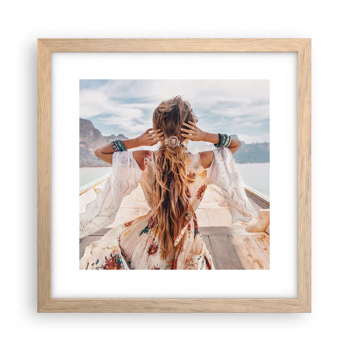 Poster in einem Rahmen aus heller Eiche - Auf dem Weg zum Glück - 30x30 cm