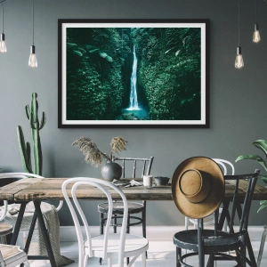 Poster in einem schwarzem Rahmen - Ein Wasserfall, umgeben von dichter tropischer Vegetation - 70x50cm - Tropisches Spa - Moderne Wanddekoration für Wohnzimmer und Schlafzimmer ARTTOR