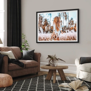 Die Landschaft voller Palmen und hohem Gras erinnert an tropische Reisen und die Freiheit eines Urlaubs. Durch die Farben in Beige-, Braun- und Weißtönen passt das Poster perfekt zu Boho- und modernen Interieurs. Es ist die perfekte Wahl für alle, die ihrem Interieur Wärme und einen natürlichen Charakter verleihen möchten.