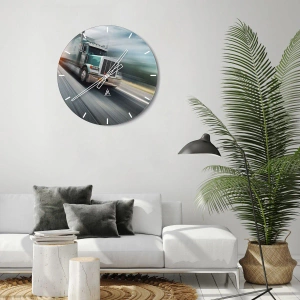 Die Uhr besteht aus 4 mm dickem Sicherheitsglas Glas. Die Herstellungstechnologie der Uhr entspricht der Sicherheitsklasse 2B2 gemäß der Norm PN-EN 12600: 2004, die Stoßfestigkeit garantiert. Die Uhr auf dem Glas ist bereit zu hängen - es hat einen Metallanhänger, einen Anhänger auf der Rückseite der Uhr und einen Schaumstoffabstand, der einen gleichmäßigen Abstand zwischen der Uhr und der Wand reguliert. Die Uhr hat einen geräuschlosen Schwimmmechanismus, der von einer 1,5-V-Batterie betrieben wird - AA-Batterie inbegriffen).