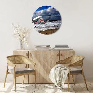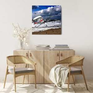 Wanduhr - Glasuhr - Ein versunkener Bus am Strand inmitten von Wellen und rauer See - 30x30cm - Und was stehst du so erstaunt? - Moderne Wanddekoration für Wohnzimmer und Schlafzimmer ARTTOR