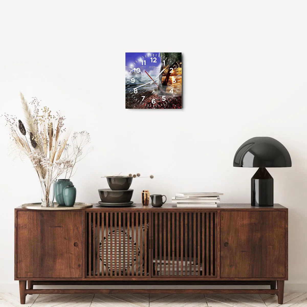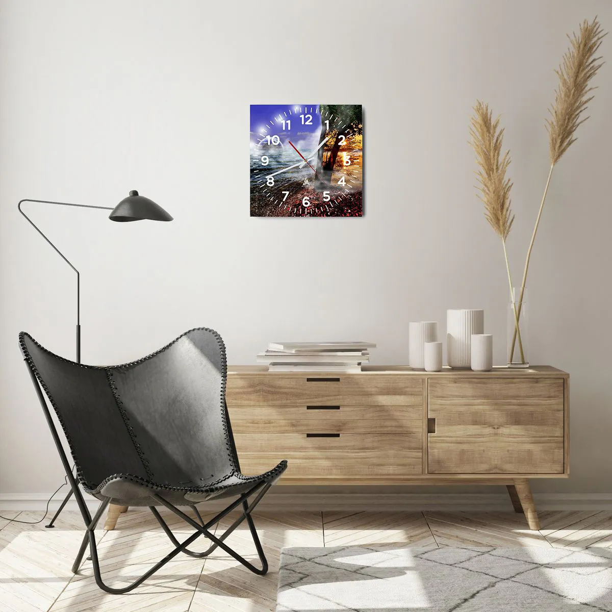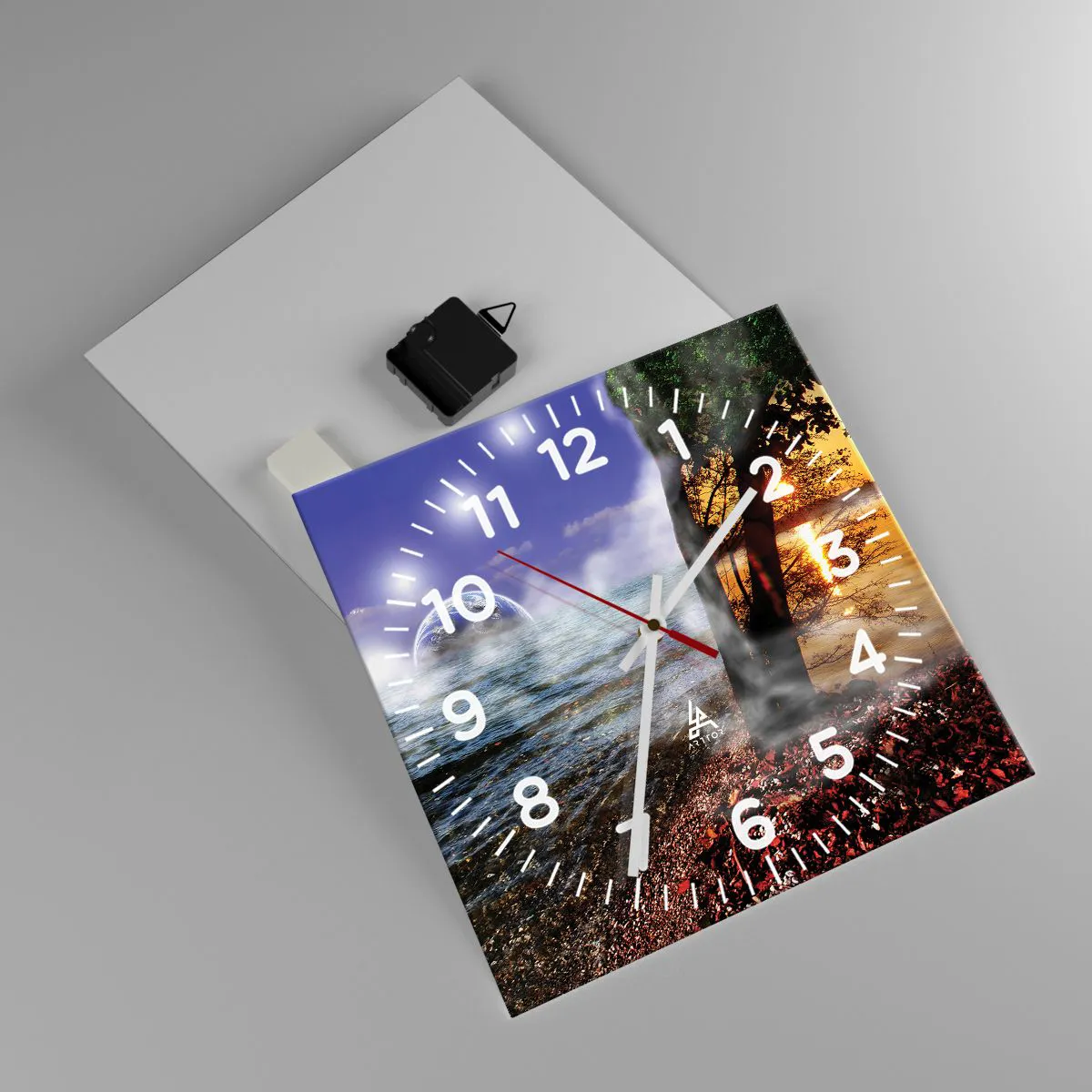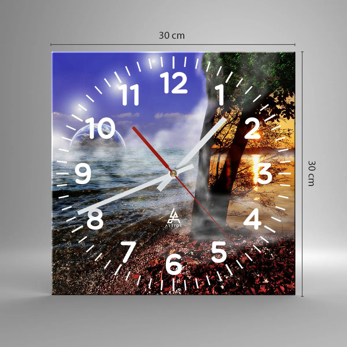 Wanduhr - Glasuhr - Surreale Landschaft - Einheit der Natur - 30x30 cm