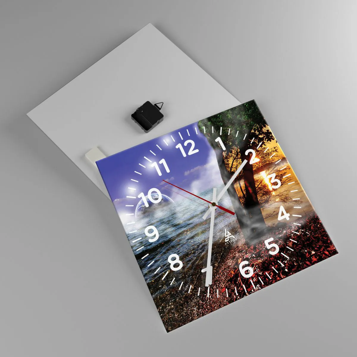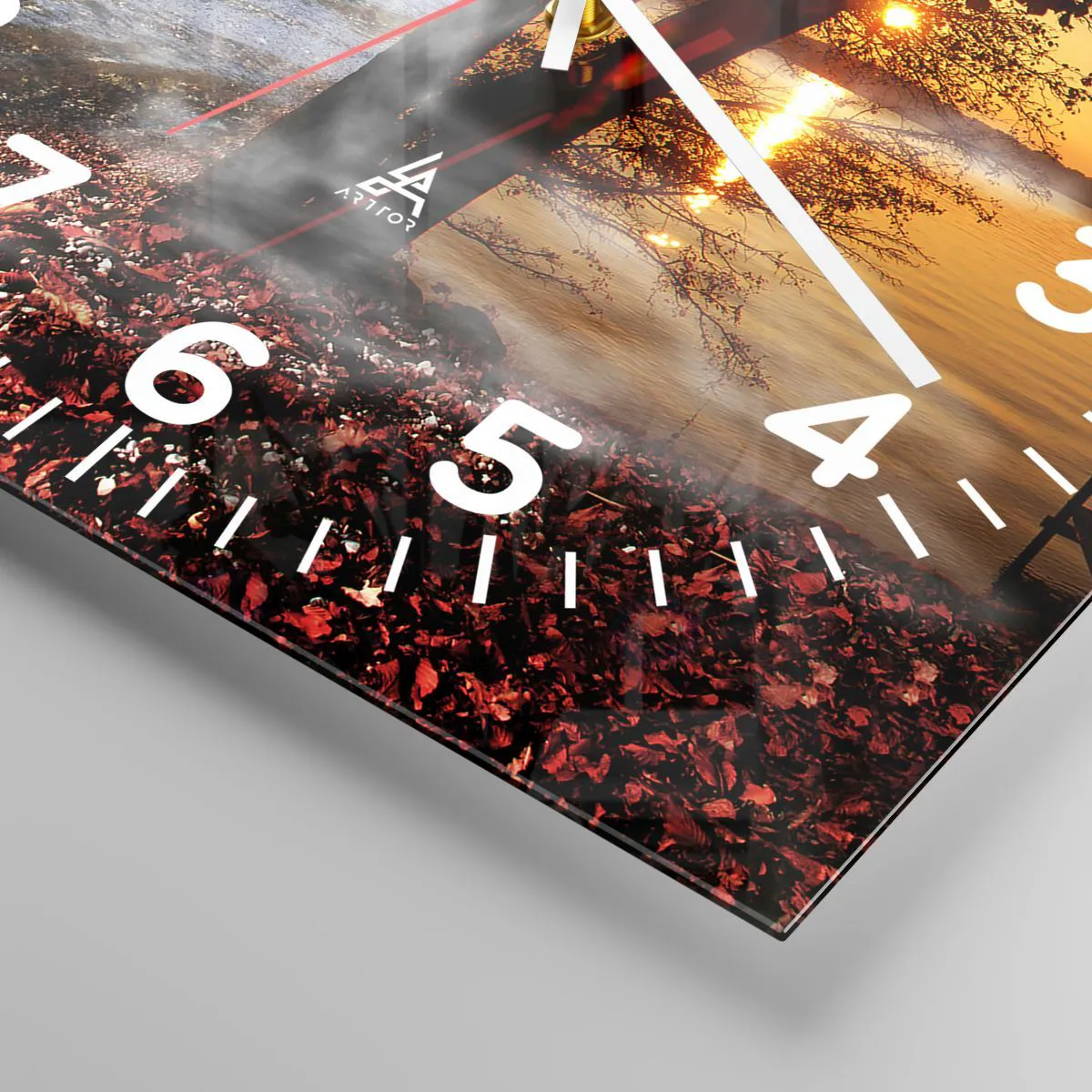 Die Uhr besteht aus robustem 4 mm dickem Glas. Glas bewahrt die natürlichen Farben des Drucks