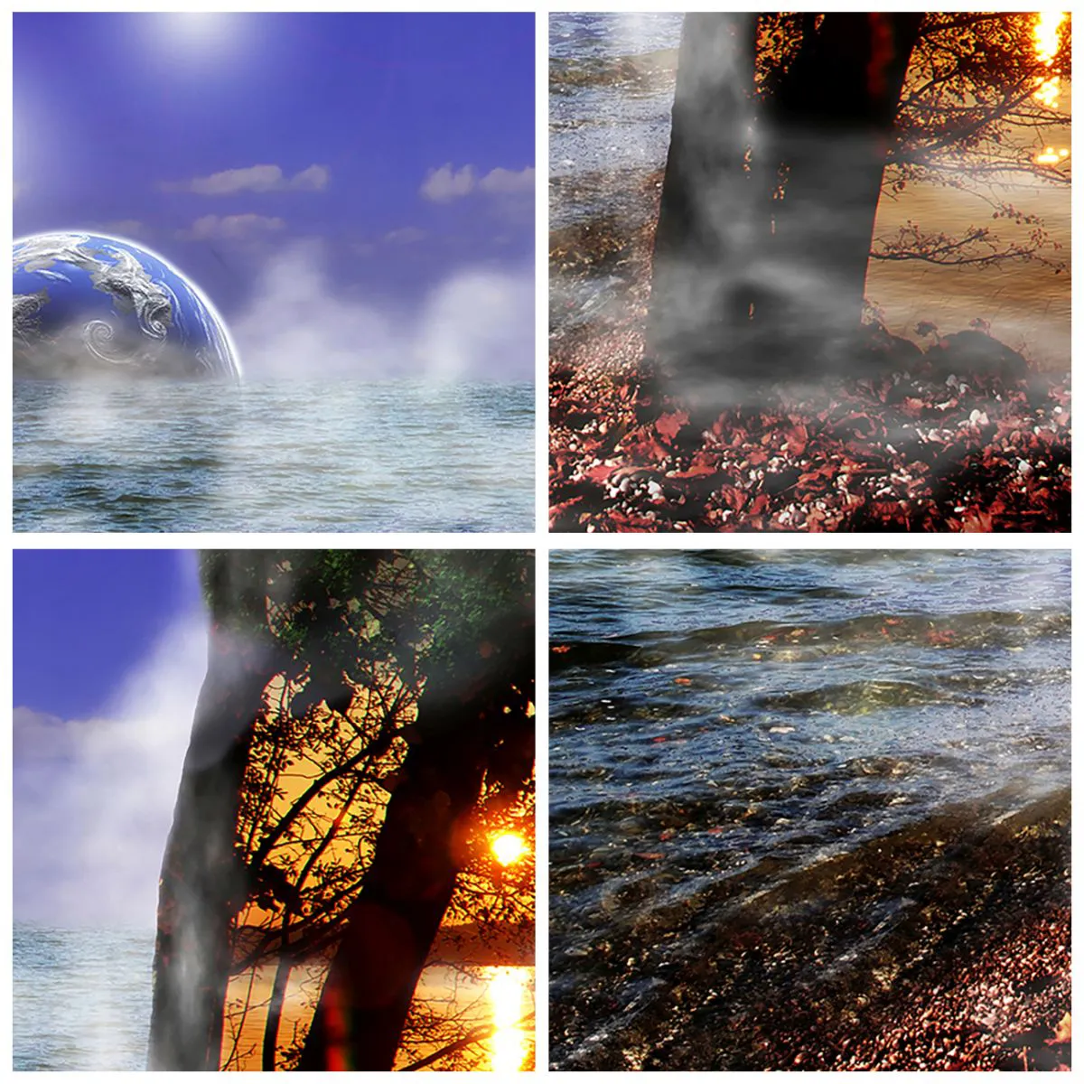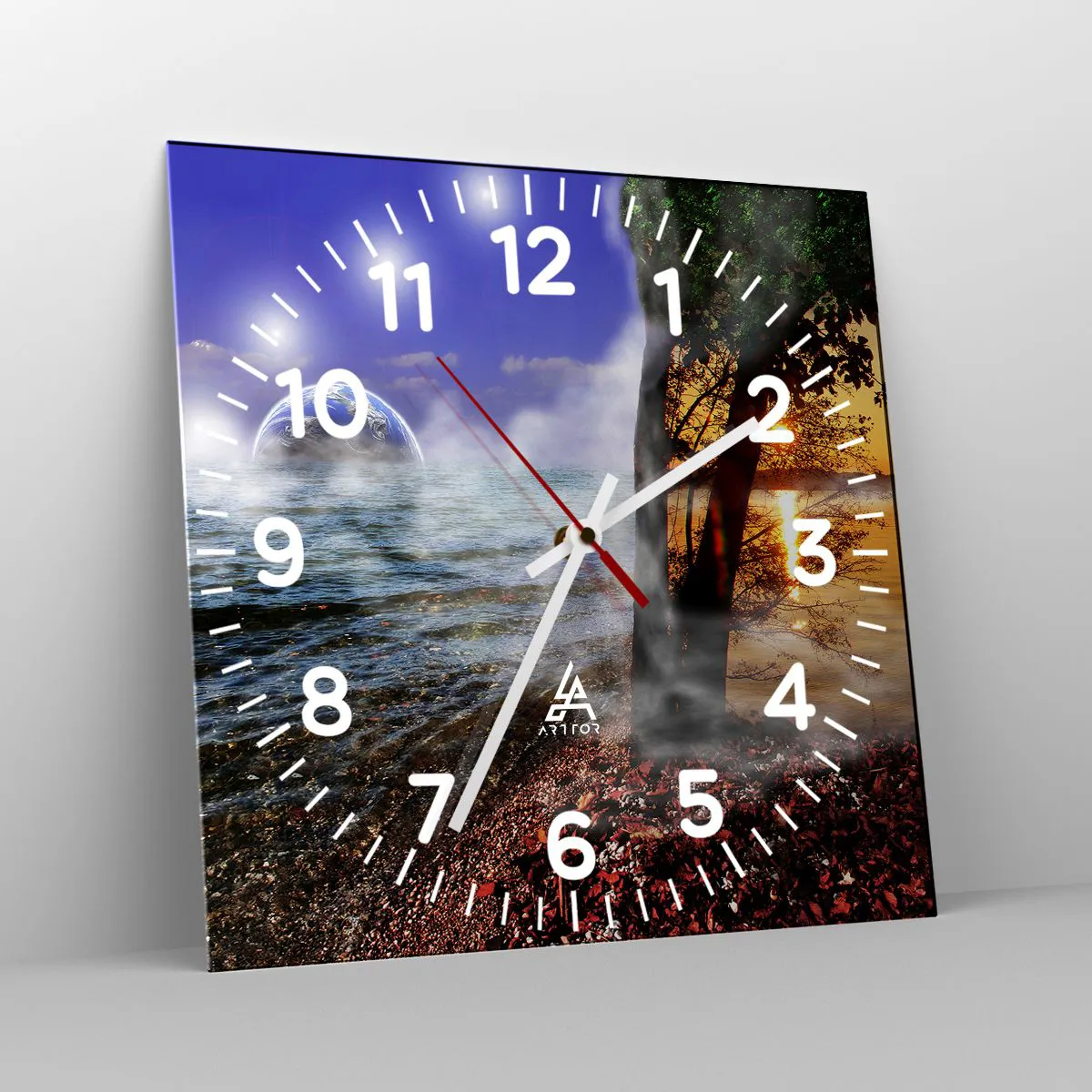 Wanduhr - Glasuhr - Surreale Landschaft - Einheit der Natur - 40x40 cm