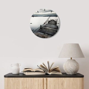 Die Uhr besteht aus 4 mm dickem Sicherheitsglas Glas. Die Herstellungstechnologie der Uhr entspricht der Sicherheitsklasse 2B2 gemäß der Norm PN-EN 12600: 2004, die Stoßfestigkeit garantiert. Die Uhr auf dem Glas ist bereit zu hängen - es hat einen Metallanhänger, einen Anhänger auf der Rückseite der Uhr und einen Schaumstoffabstand, der einen gleichmäßigen Abstand zwischen der Uhr und der Wand reguliert. Die Uhr hat einen geräuschlosen Schwimmmechanismus, der von einer 1,5-V-Batterie betrieben wird - AA-Batterie inbegriffen).
