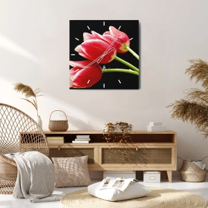 • Blumen, Tulpen, Natur, Botanik, Blumen, Für das Büro, für das Arbeitszimmer, für das Esszimmer, für den Flur, für das Wohnzimmer, für das Schlafzimmer, Schwarz Rot, Runden