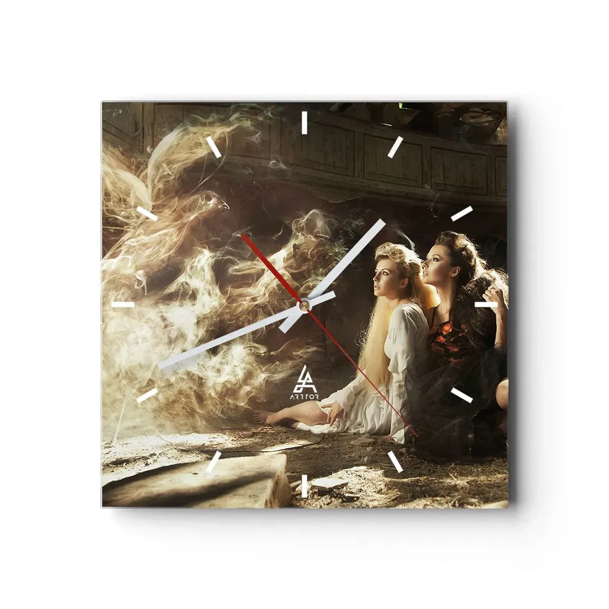 Wanduhr - Glasuhr - Zwei Frauen in einer magischen Umgebung mit ätherischen Lichteffekten. - 30x30cm - Und es gab Poesie - Moderne Wanddekoration für Wohnzimmer und Schlafzimmer ARTTOR