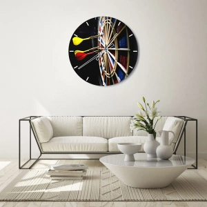 Die Uhr besteht aus 4 mm dickem Sicherheitsglas Glas. Die Herstellungstechnologie der Uhr entspricht der Sicherheitsklasse 2B2 gemäß der Norm PN-EN 12600: 2004, die Stoßfestigkeit garantiert. Die Uhr auf dem Glas ist bereit zu hängen - es hat einen Metallanhänger, einen Anhänger auf der Rückseite der Uhr und einen Schaumstoffabstand, der einen gleichmäßigen Abstand zwischen der Uhr und der Wand reguliert. Die Uhr hat einen geräuschlosen Schwimmmechanismus, der von einer 1,5-V-Batterie betrieben wird - AA-Batterie inbegriffen).