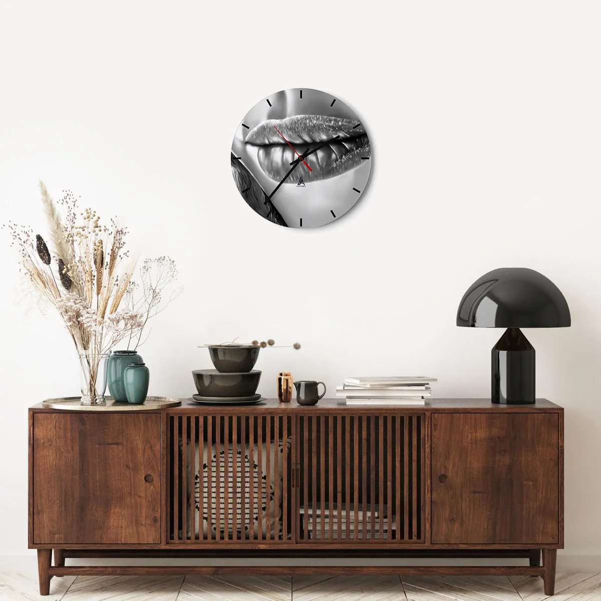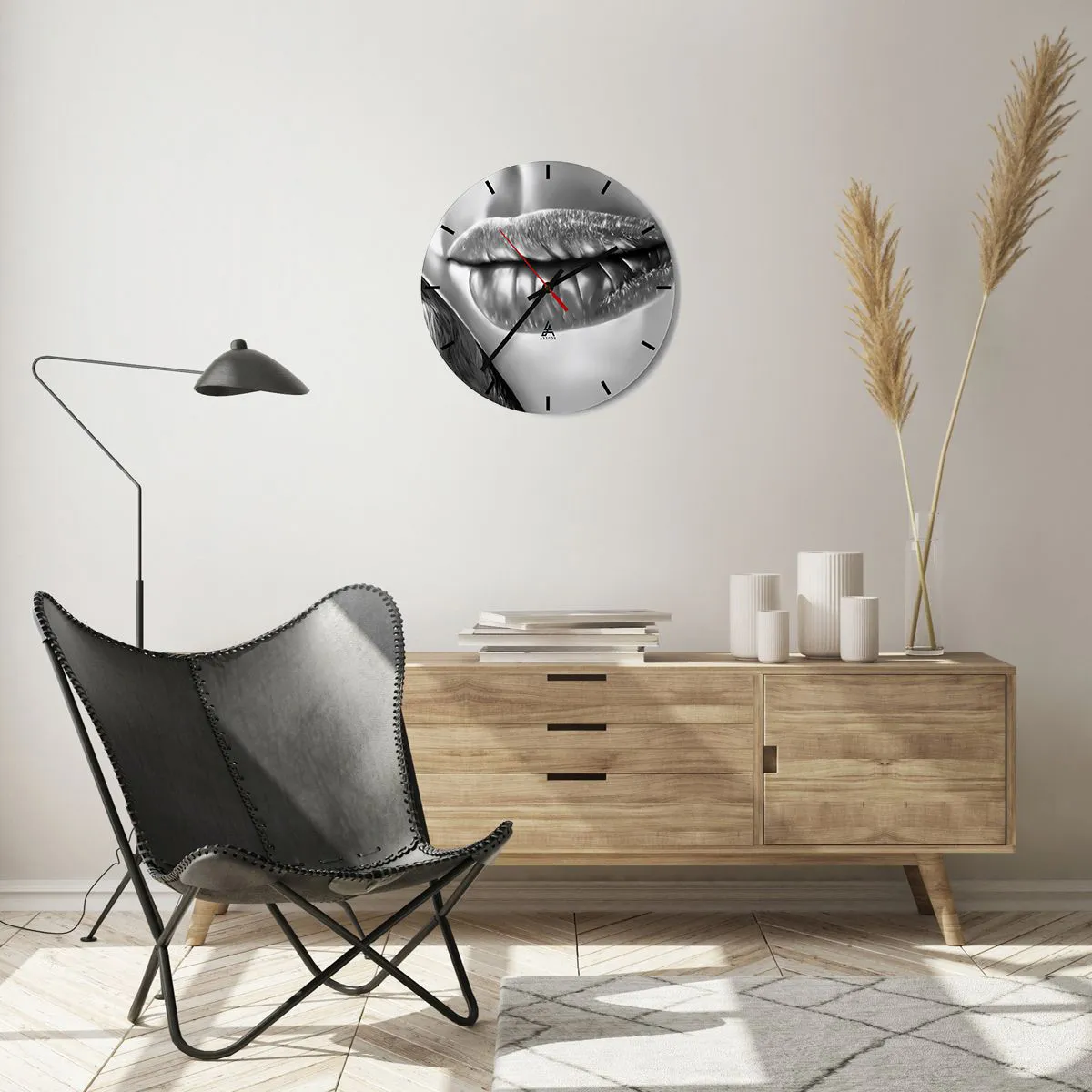Die Uhr besteht aus robustem 4 mm dickem Glas. Glas bewahrt die natürlichen Farben des Drucks