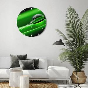 Die Uhr besteht aus 4 mm dickem Sicherheitsglas Glas. Die Herstellungstechnologie der Uhr entspricht der Sicherheitsklasse 2B2 gemäß der Norm PN-EN 12600: 2004, die Stoßfestigkeit garantiert. Die Uhr auf dem Glas ist bereit zu hängen - es hat einen Metallanhänger, einen Anhänger auf der Rückseite der Uhr und einen Schaumstoffabstand, der einen gleichmäßigen Abstand zwischen der Uhr und der Wand reguliert. Die Uhr hat einen geräuschlosen Schwimmmechanismus, der von einer 1,5-V-Batterie betrieben wird - AA-Batterie inbegriffen).