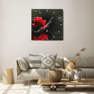 Wanduhr - Glasuhr - Rote Rose mit Wassertropfen auf dunklem Hintergrund - 30x30cm - rot und Schwarz - Moderne Wanddekoration für Wohnzimmer und Schlafzimmer ARTTOR