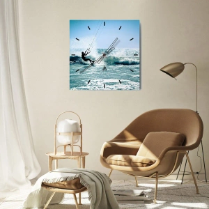 Wanduhr - Glasuhr - Kitesurfer reitet an einem sonnigen Tag am Meer auf einer Welle - 30x30cm - Hinreißen lassen - Moderne Wanddekoration für Wohnzimmer, Küche und Schlafzimmer ARTTOR