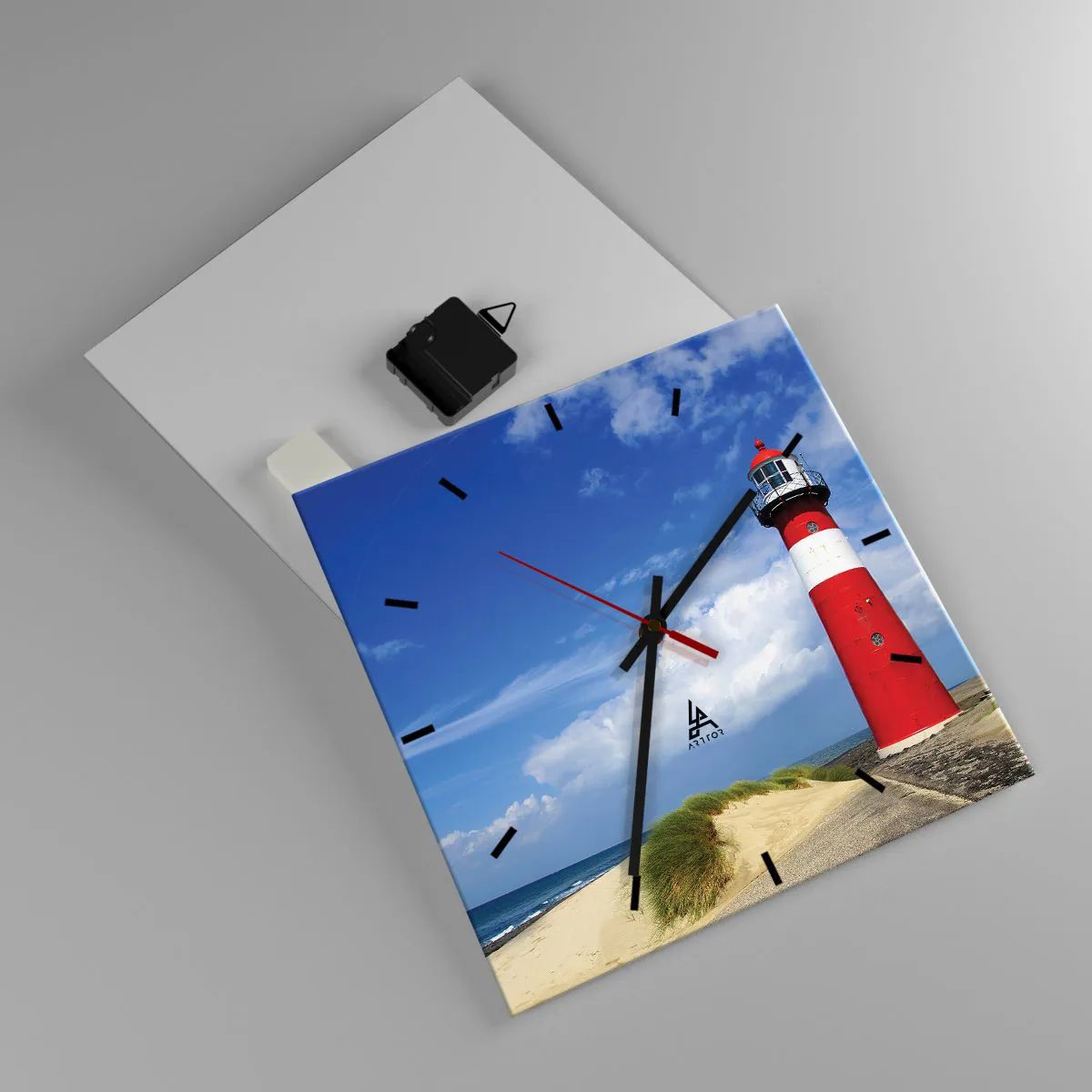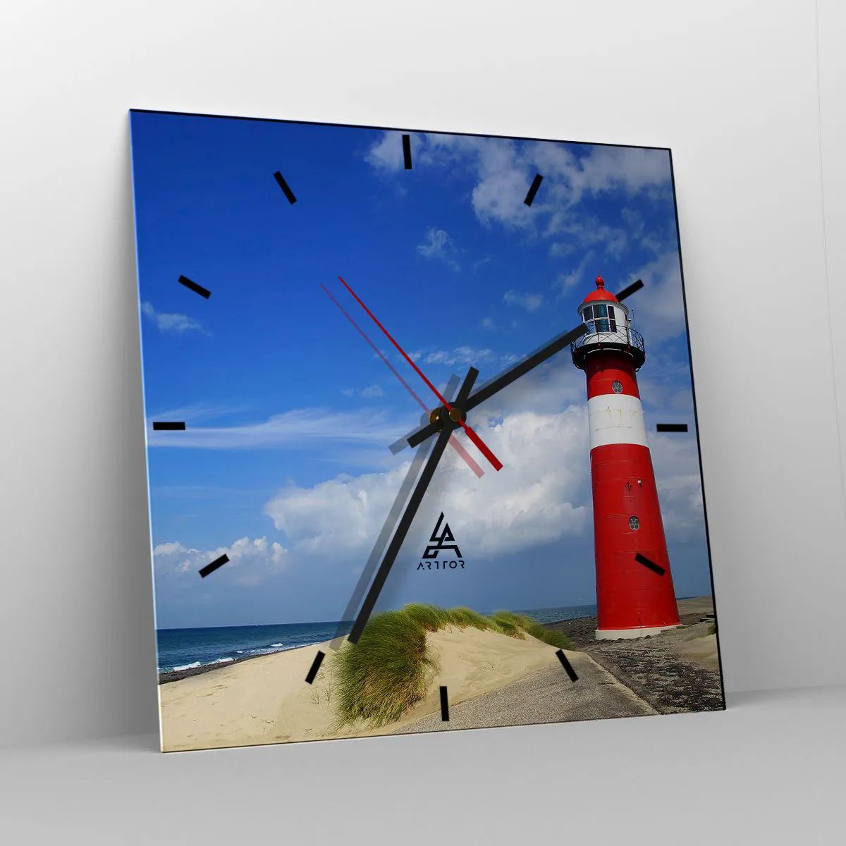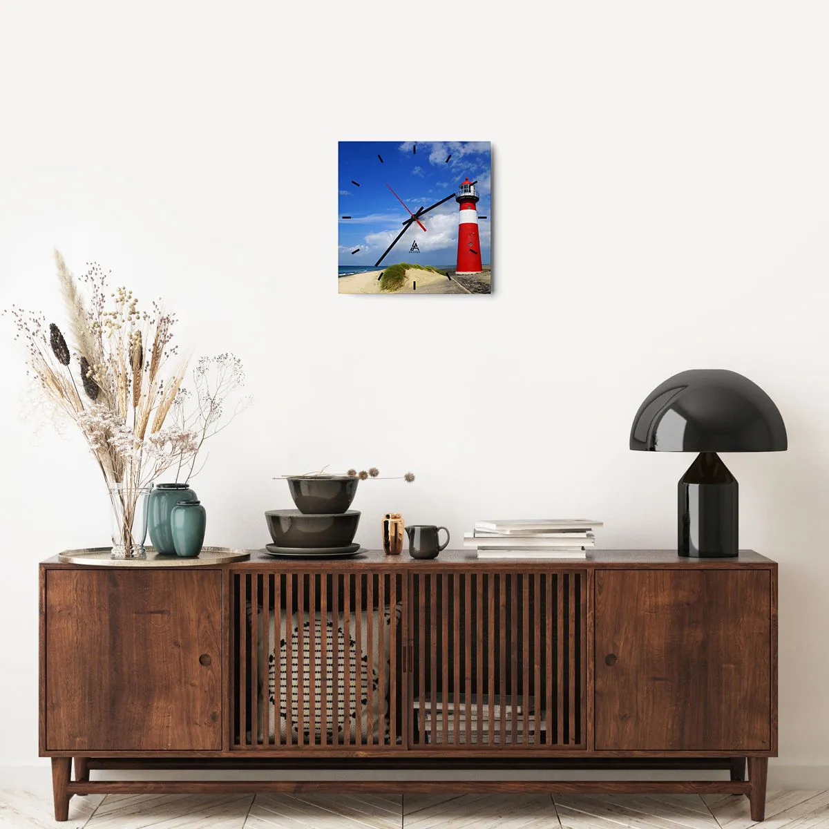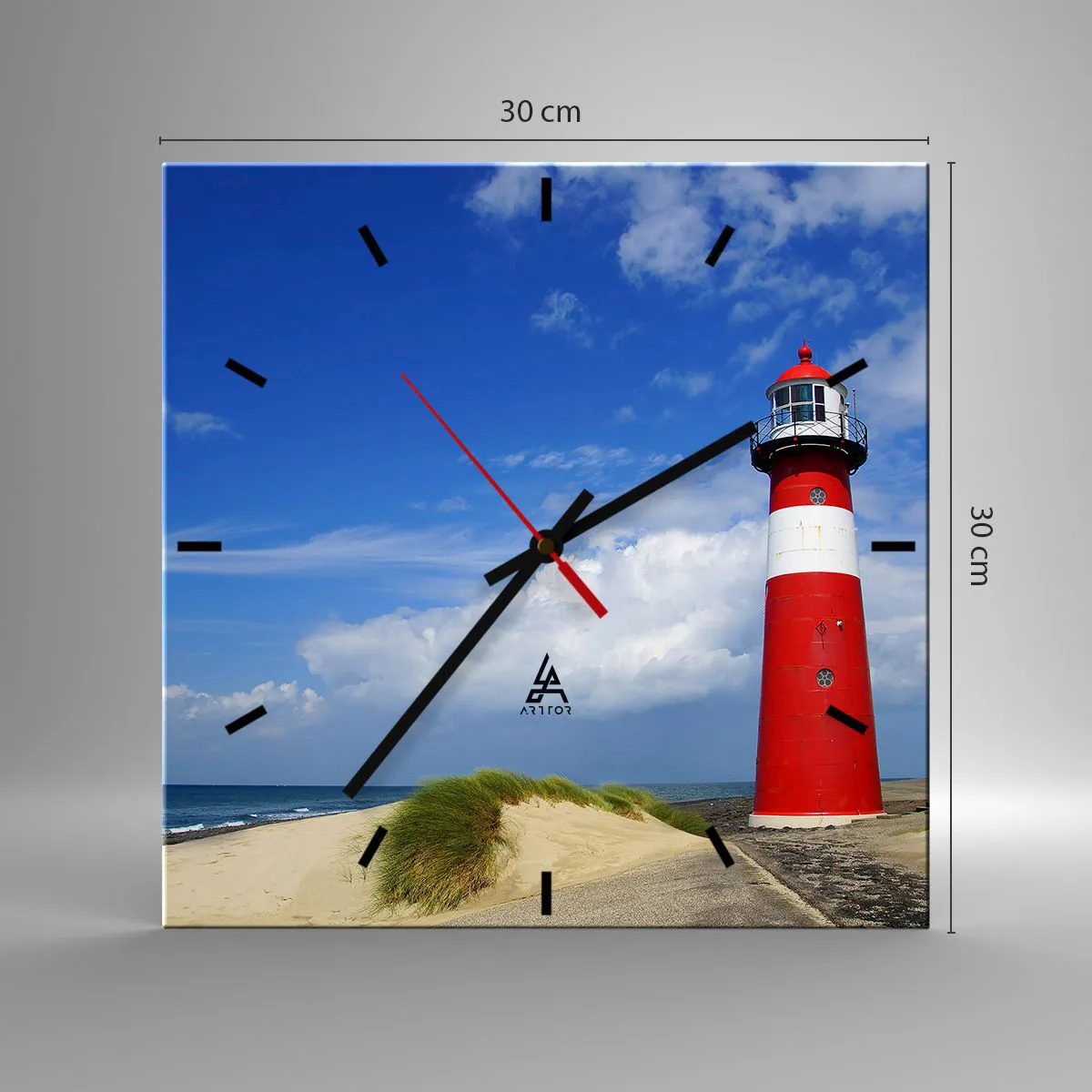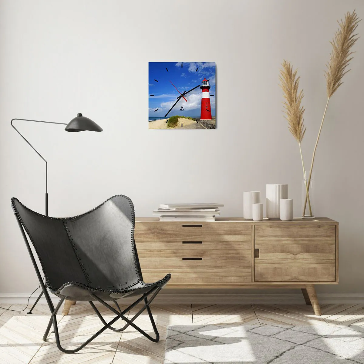Wanduhr - Glasuhr - Roter Leuchtturm am Strand unter blauem Himmel - 30x30cm - Traum Einsamkeit - Moderne Wanddekoration für Wohnzimmer und Schlafzimmer ARTTOR