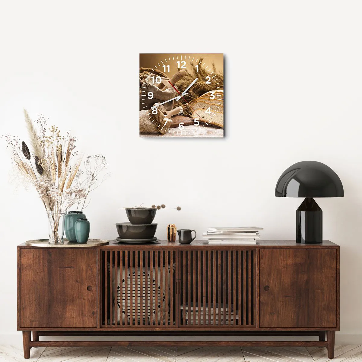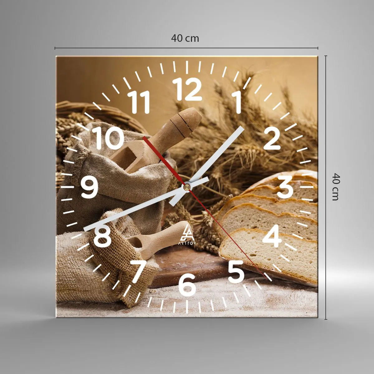 Die Uhr besteht aus robustem 4 mm dickem Glas. Glas bewahrt die natürlichen Farben des Drucks