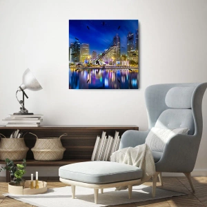Wanduhr - Glasuhr - Metropolis bei Regenbogennacht - 40x40 cm