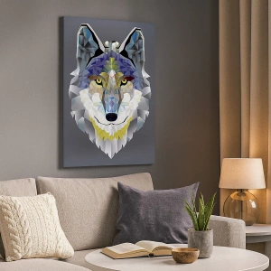 Das Leinwandgemälde „Geometrisches Bild eines Wolfs auf grauem Hintergrund“ ist ein Vorschlag für alle, die moderne und ausdrucksstarke Inneneinrichtung zu schätzen wissen. Die Komposition zeigt ein stilisiertes Bild eines Wolfs im geometrischen Stil, bei dem bunte Formen auf neutralem, grauem Hintergrund ein harmonisches Ganzes bilden.