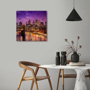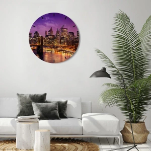 Wanduhr - Glasuhr - Violett-goldenes Manhathann - 30x30 cm